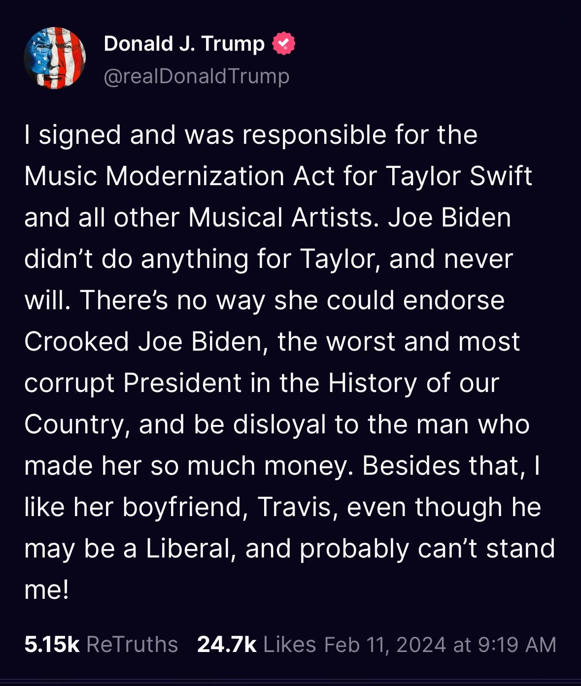 Yeah, this will definitely get Trump Taylor’s endorsement ?